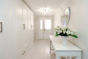 - You are greeted with a sense of warmth the moment you walk through the front door with the neutral palette and Built-In Cabinetry that adorn your Front Hallway.