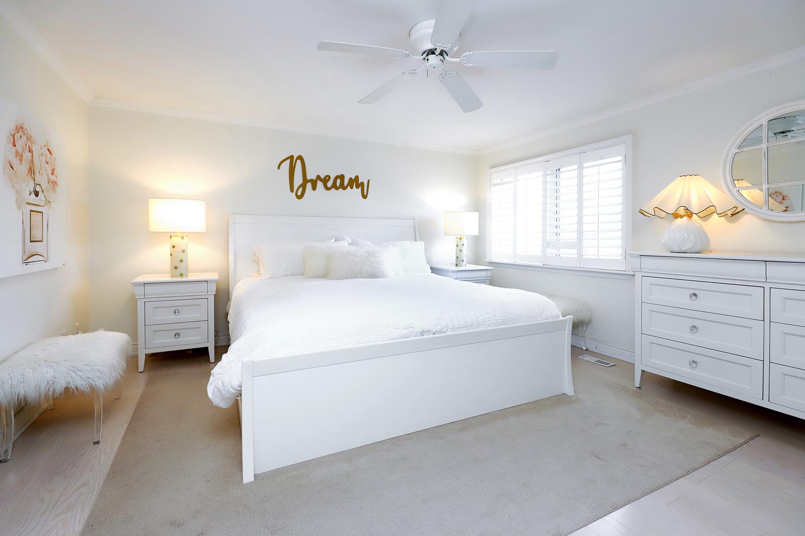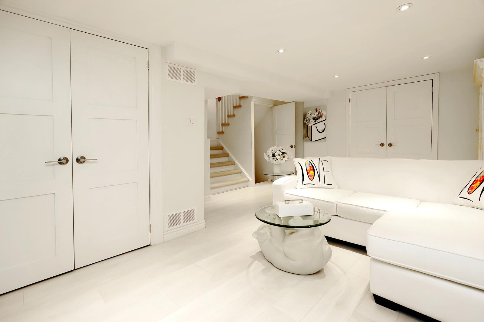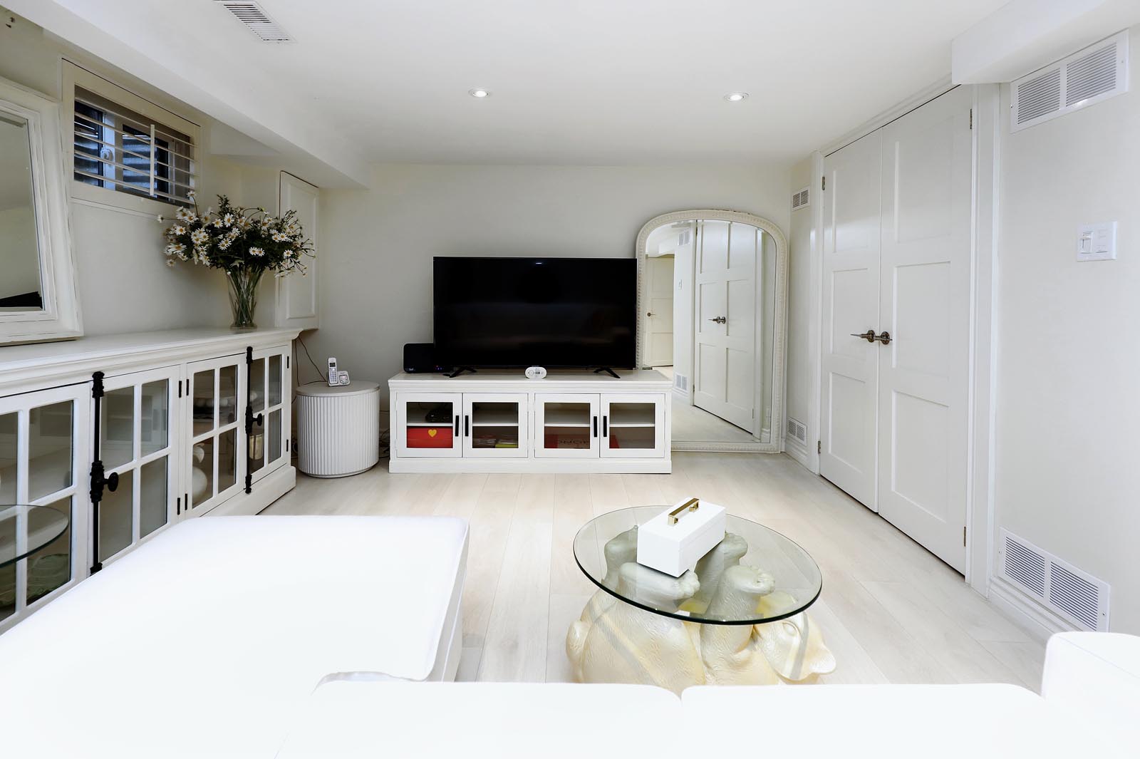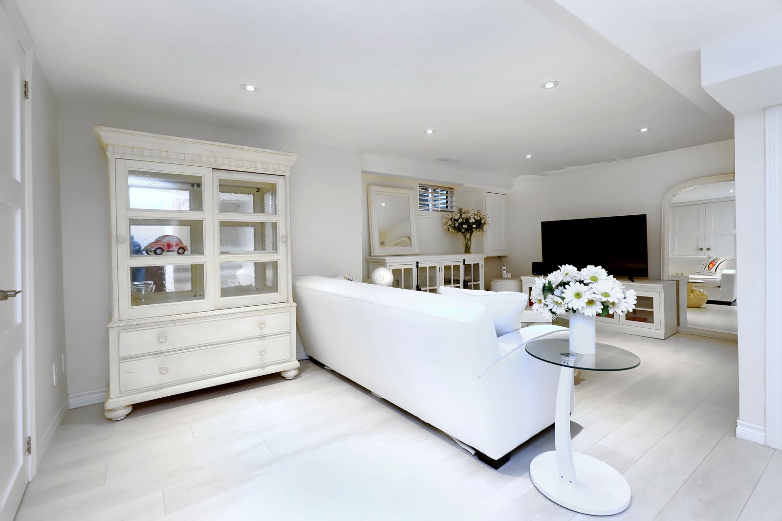 - The spacious Primary Bedroom includes a Renovated 2-pc ensuite with Custom Glass Cabinetry & a Walk-In Closet.